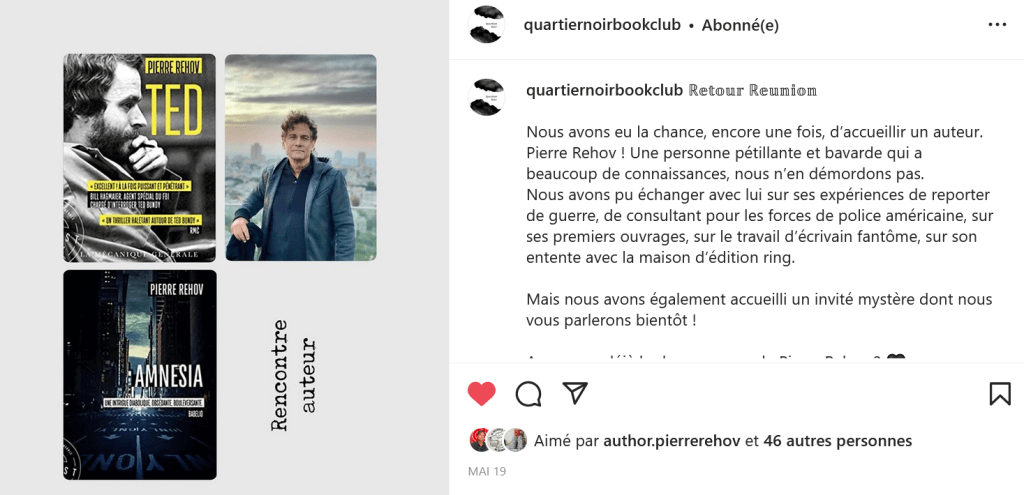 Sans transition, je passe au club de lecture ! Nous avons eu notre réunion mensuelle et nous avons eu la chance de recevoir un grand auteur, un grand homme ! Roulements de tambouuuuuuuuur j’invite : Monsieur Pierre Rehov !!! Quelle rencontre incroyable, nous avons passé 2h accroché à ses lèvres, buvant chacune de ses paroles tant cet homme est passionnant, gentil, drôle et bienveillant. Un grand moment, suite à notre précédente lecture commune du livre Amnesia, que j’avais adoré.Si vous ne connaissez pas Pierre, je vous invite vivement à aller le découvrir. Il est incroyable.